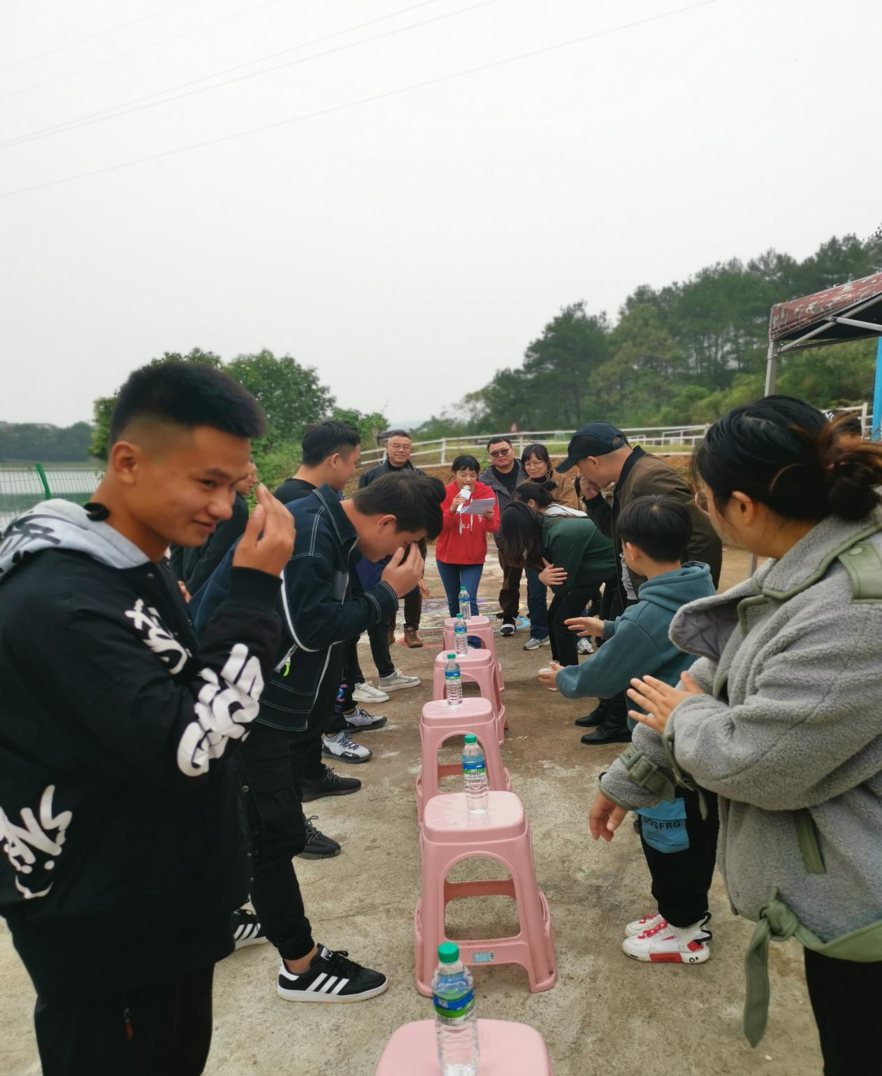 兩組人員搶水瓶游戲